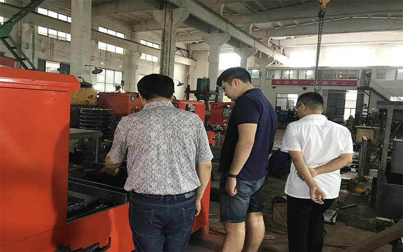 領(lǐng)導給客戶詳細介紹了我廠的產(chǎn)品,并一同進入生產(chǎn)車間實際了解礦用電機車及礦用牽引電機等配件的生產(chǎn)、測試。